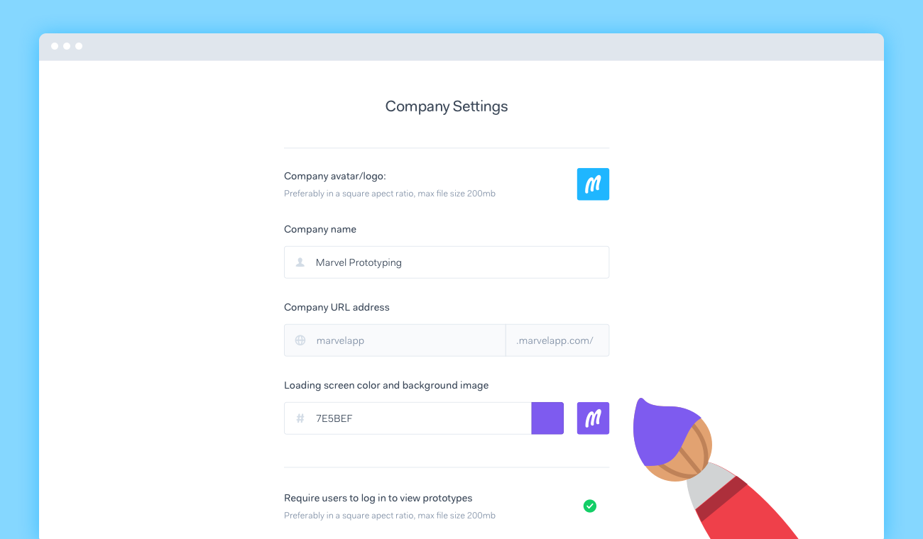 We want Marvel to look and feel like the home of all of your companies design work. You can now customise the colours and branding of loading screens within Marvel.