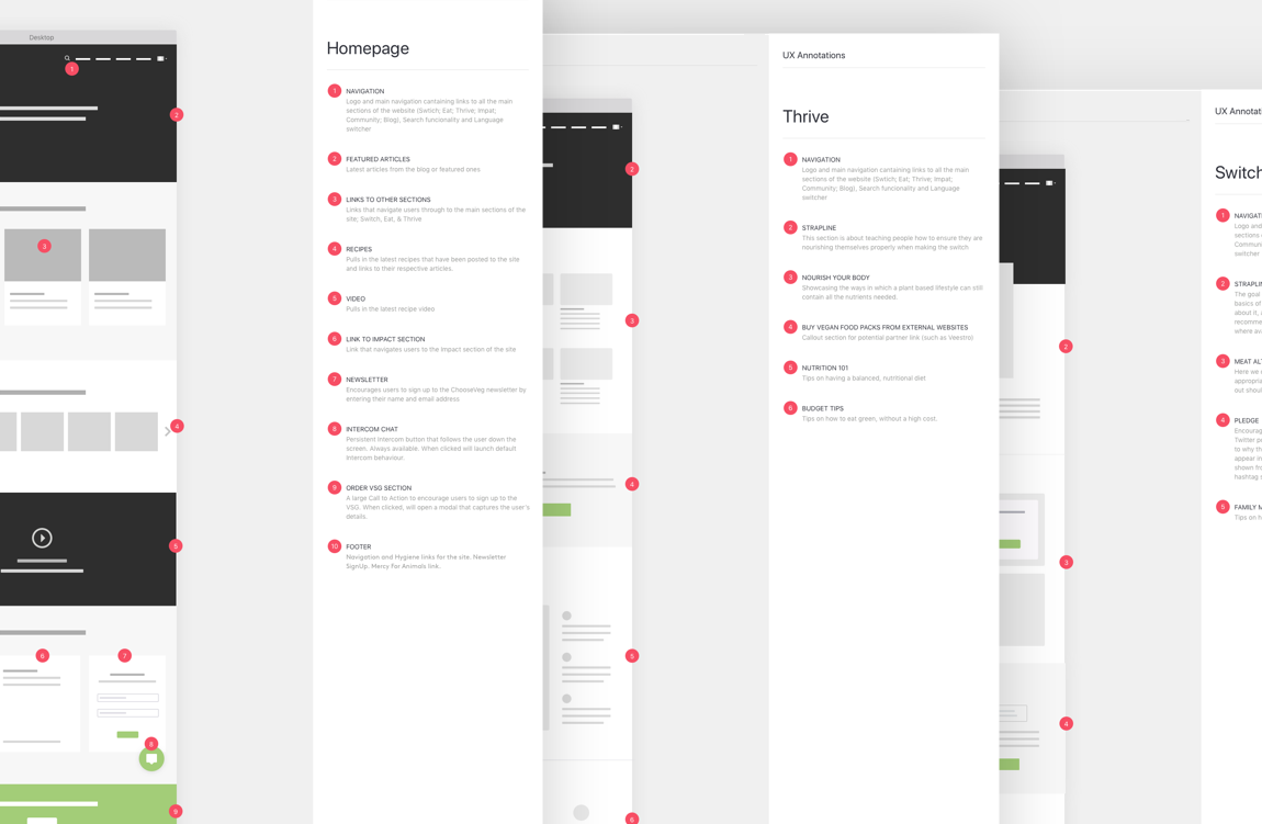 Once completed, we'd then transfer the wireframes into the presentation document where we'd annotate the key points and functionality.