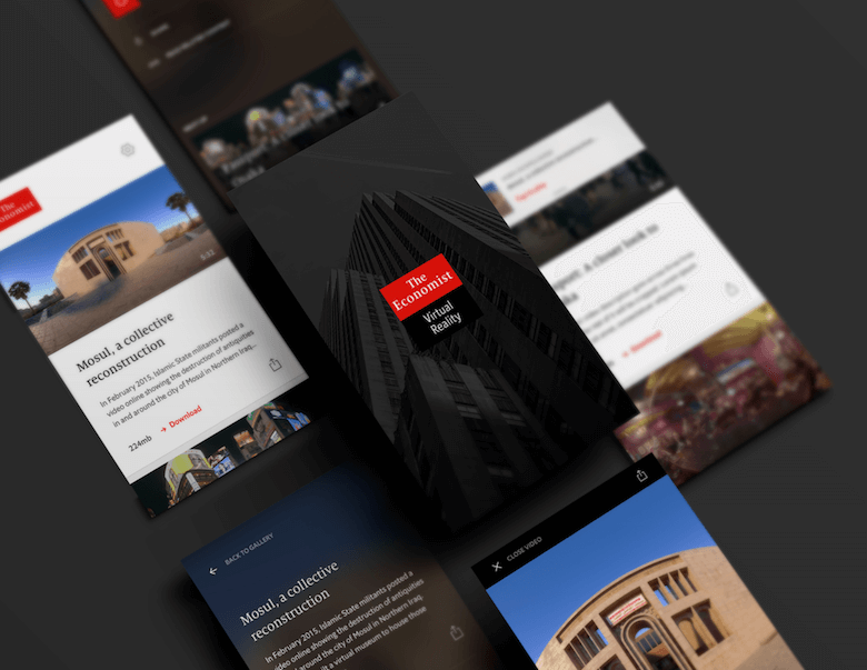 The first full VR UI design we did was an app for The Economist, created in collaboration with VR production studio Visualise. We did the design, while Visualise created the content and developed the app.