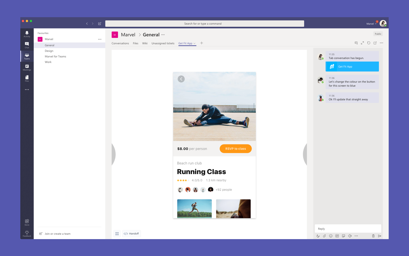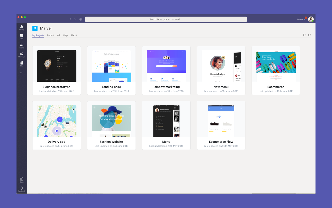 We're super excited to announce our integration with Microsoft Teams, a platform that combines workplace chat, meetings, notes and attachments. We've incorporated plenty of ways for you and your team to access Marvel projects and features directly within the app.
