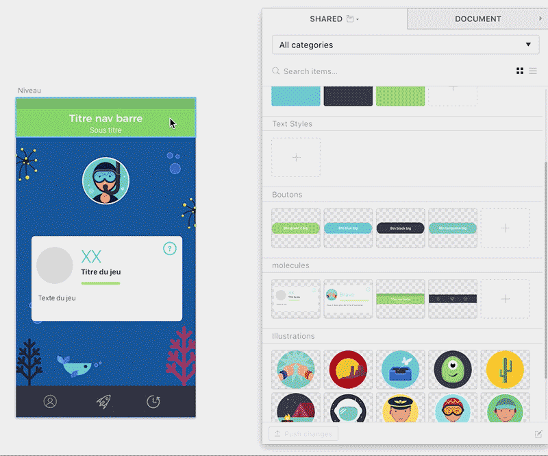 I have to admit that for the moment, of the various shared libraries I’ve tested, I have not yet found one which is totally adapted to work with Atomic Design… Still missing is this strong interdependence between atoms and components which allows us to create a lively and evolving system.