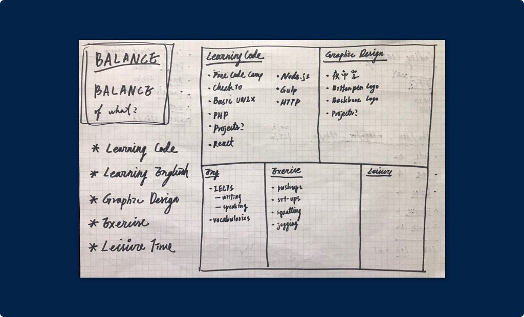 - List of skills I wanted to learn and the rough plan I sketched on paper